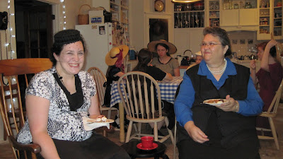 11 women folks (ladies, young ladies, and girls) wearing all kinds of lovely hats, got together at our house at 7pm!